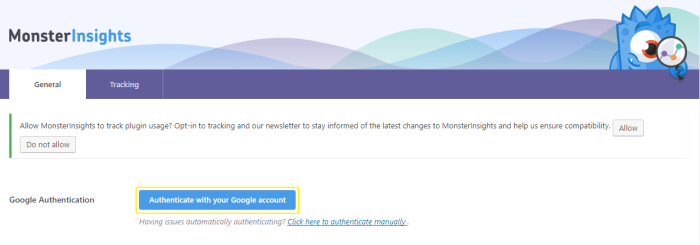 Now head over to Insights > Settings from the sidebar menu and click on the Authenticate with your Google account button.